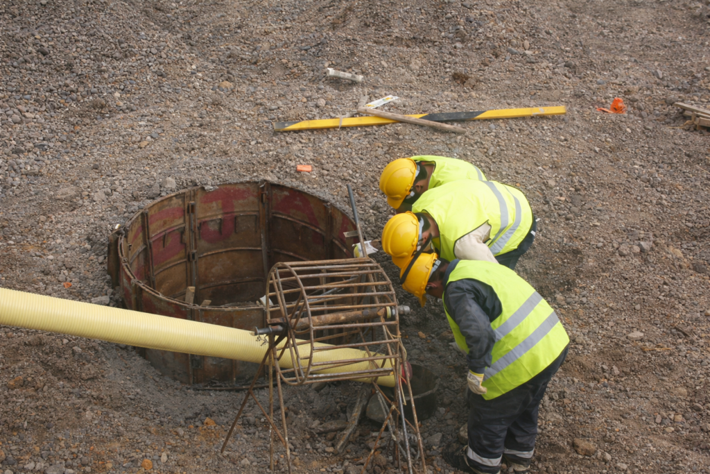 La excavación suele realizarse con diámetros variables según diseño, avanzando en secciones de 1 metro de profundidad. Los anillos perimetrales de concreto se construyen con espesores de aproximadamente 15 cm, reforzados con acero, hasta alcanzar las profundidades requeridas.